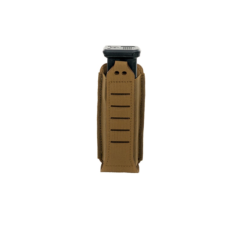 The Pistol Mag Cell is a single slot elastic sleeve that delivers secure low-profile retention for one pistol magazine. It fits most pistol mags and a variety of multi-tools, keeping gear firmly retained.