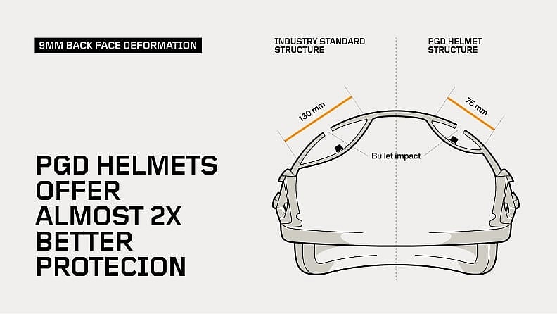 50% reduction in Back Face Deformation (BFD) against 9 mm (HPW-TP-0401.01B IIIA)